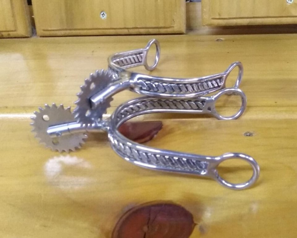 Espora Torcida, fabricada em aço inox, livre de ferrugens.
