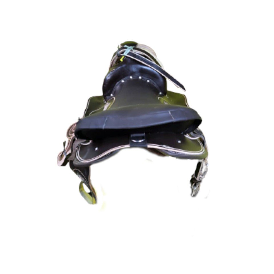 Acompanha rédea, barrigueiras,látegos, cabeçada, e estribos com loro